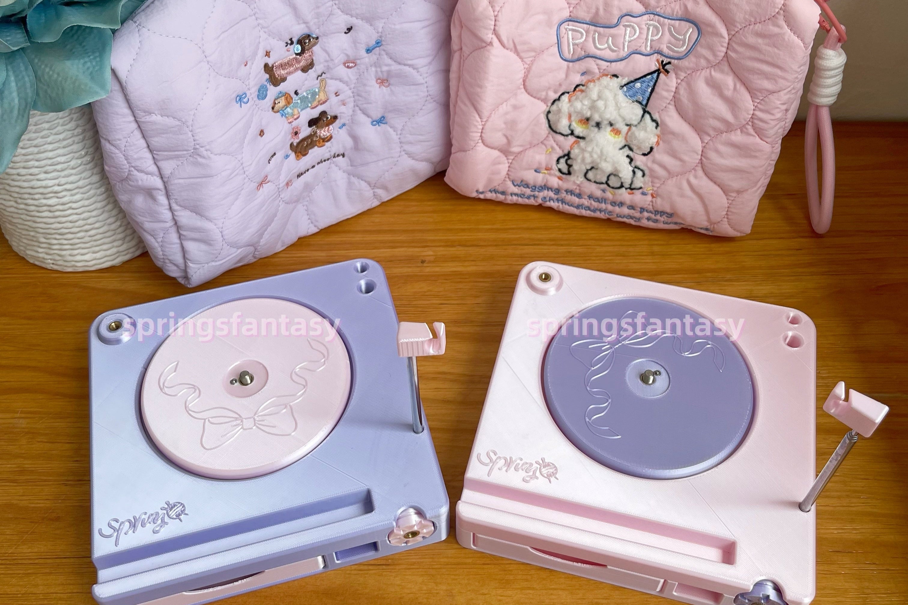 Your yarn will no longer drop and roll away while you're working on a project because this portable spinner will fix it all! The bag to carry it is so cute too and will fit extra hooks or scissors for all your projects!