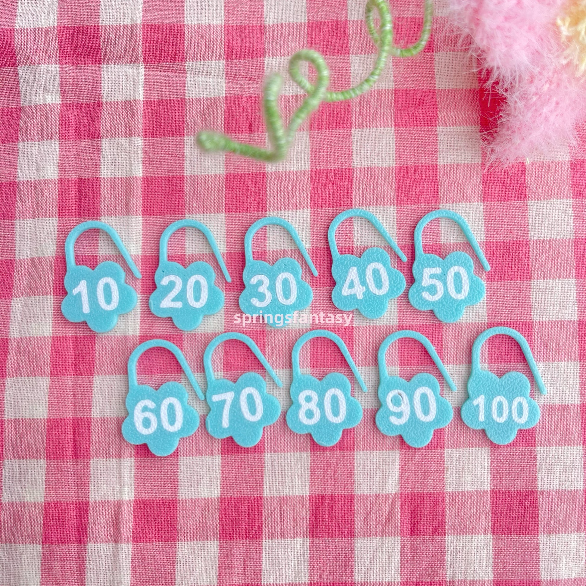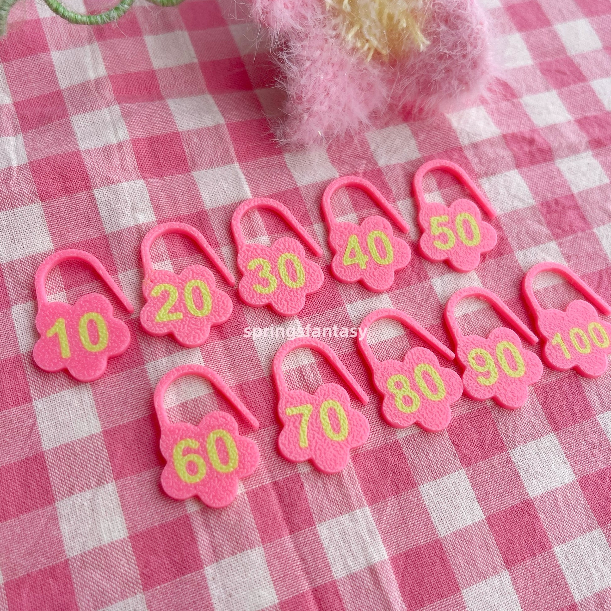 Cute, colorful flower-shaped stitch markers made from durable, recyclable PETG. Each set includes 10 markers, numbered for easy counting — perfect for tracking stitches, rows, or pattern repeats!